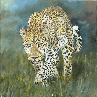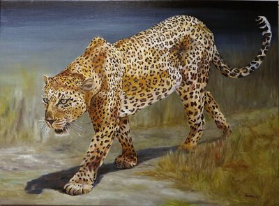 4- léopard en chasse 40x40 ,